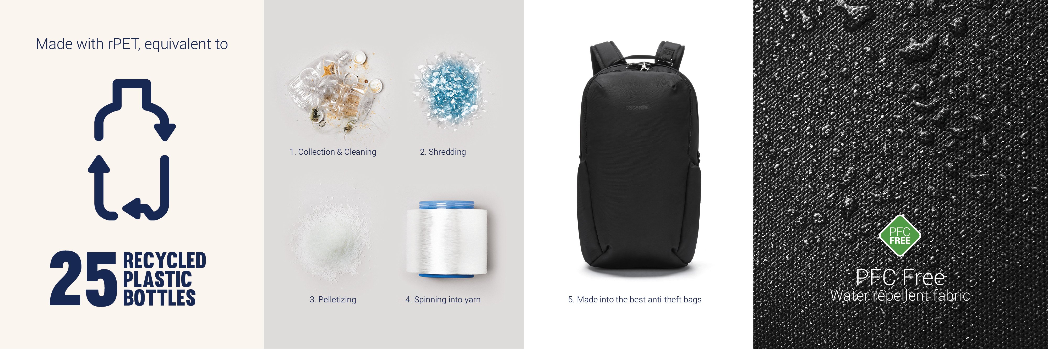 Check the sizingThis product is made with post-consumer recycled polyester (rPET), equivalent to 25 recycled plastic bottles, and is treated with a 100% PFC-free water repellency.