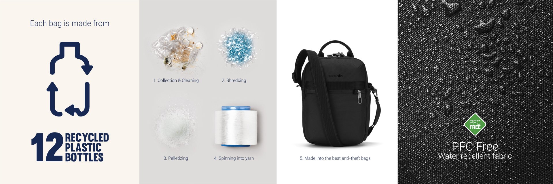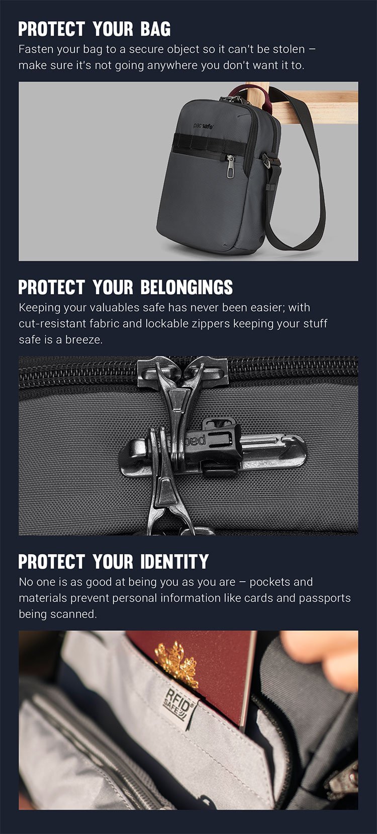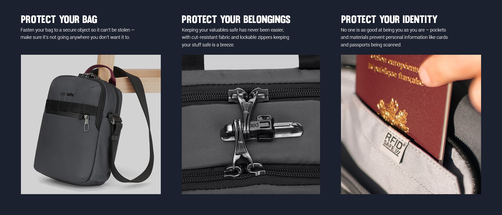 I’m very happy with my purchase. I will definitely buy from PacSafe again. It deserves every single star, plus some. There are no imperfections. Every single feature is fortified: from the straps to the zippers to the handle. The bag is very secure and very robust and is built to last. This bag also gives me ample space to keep my essentials for my trip in June. Perfect size for a personal item on a plane and for traveling abroad. It also is a nice-looking, masculine bag. Sleek grey and black with a nice pop of colour with the maroon handle. This bag is worth every penny. Highly recommend.