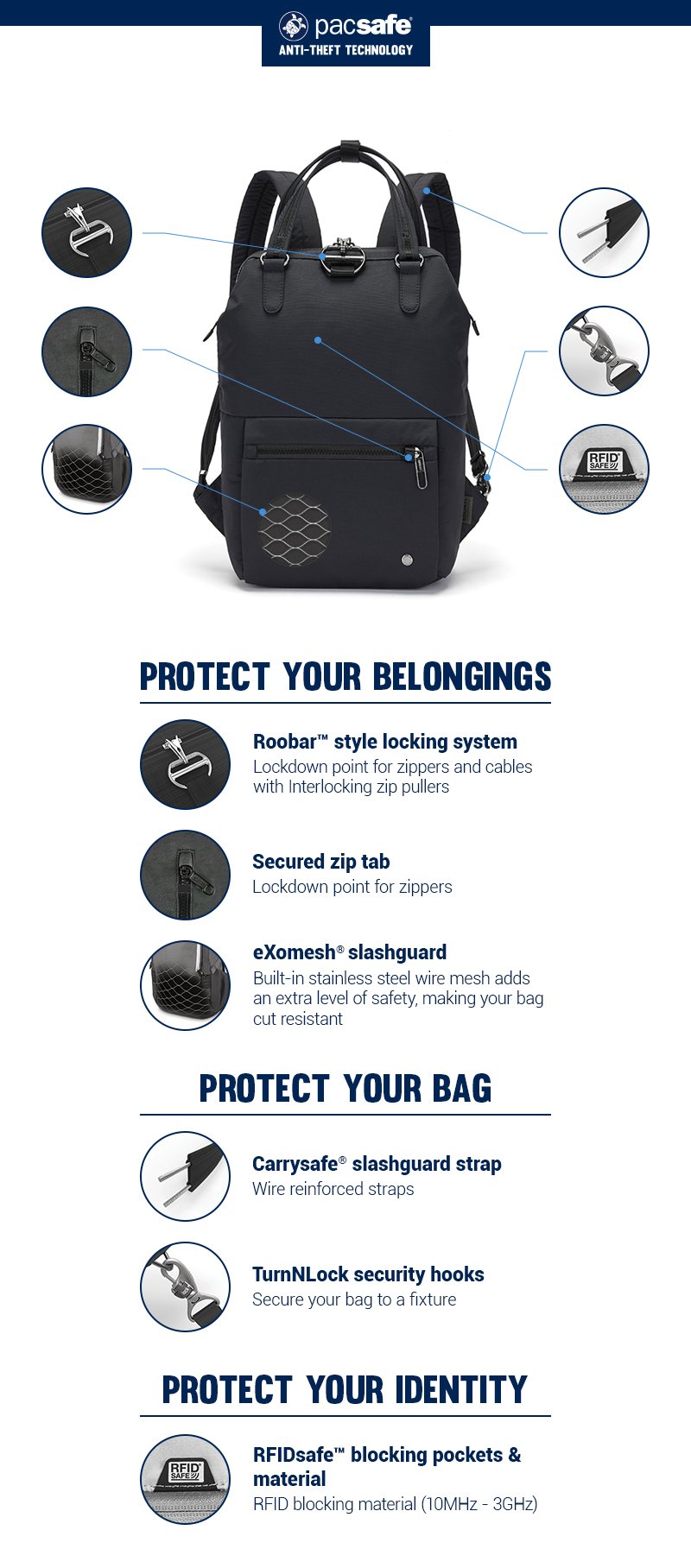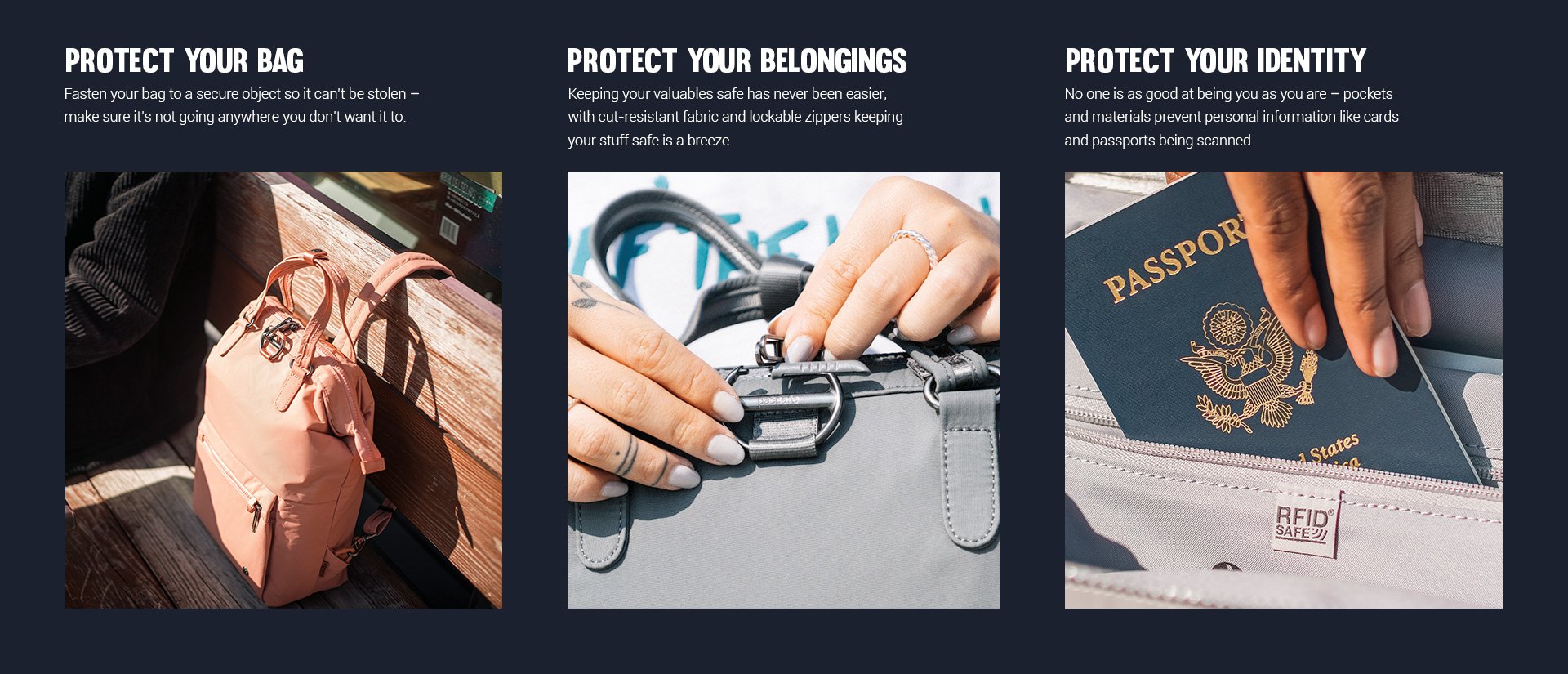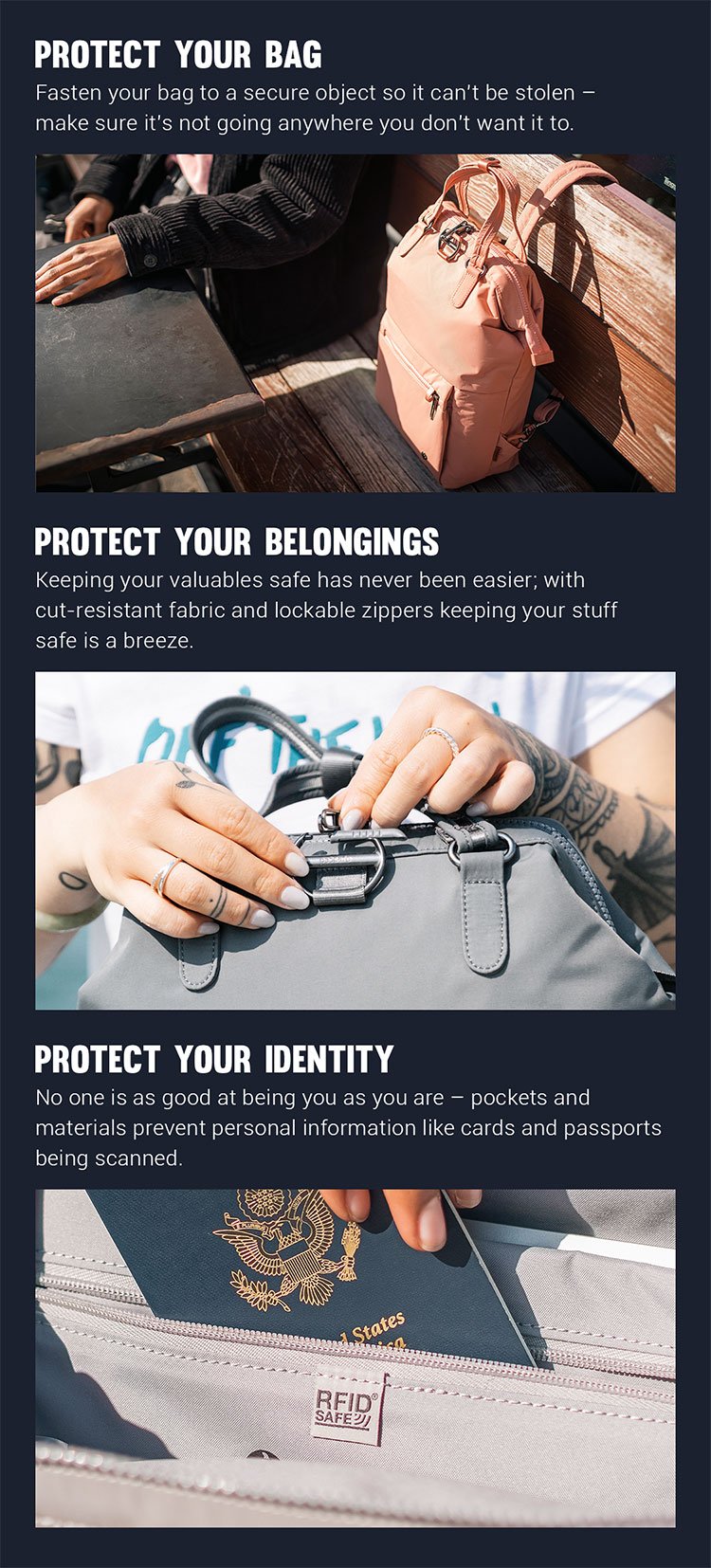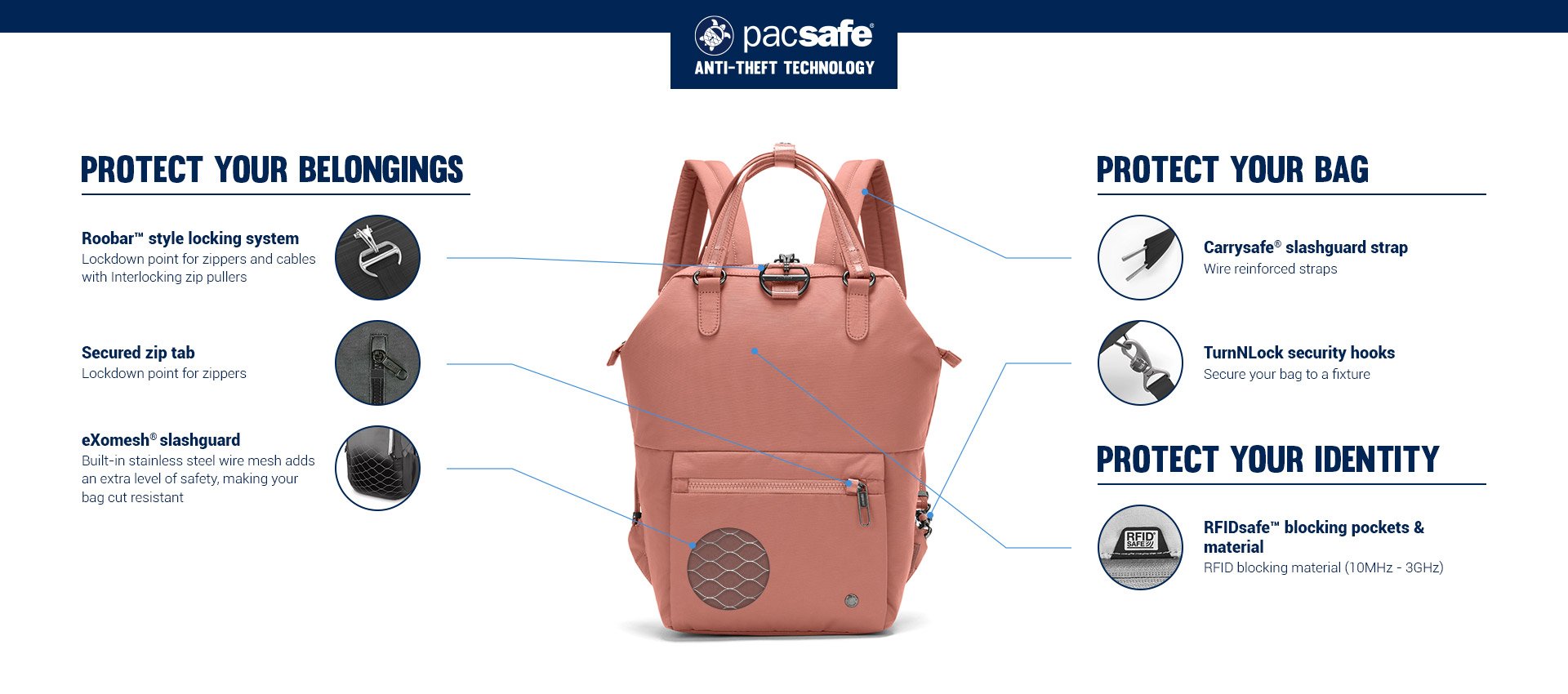 I have several Pacsafe bags . This one doesn't disappoint. Little pricey to be honest, but l don't mind paying, as the quality and safety features are still good.