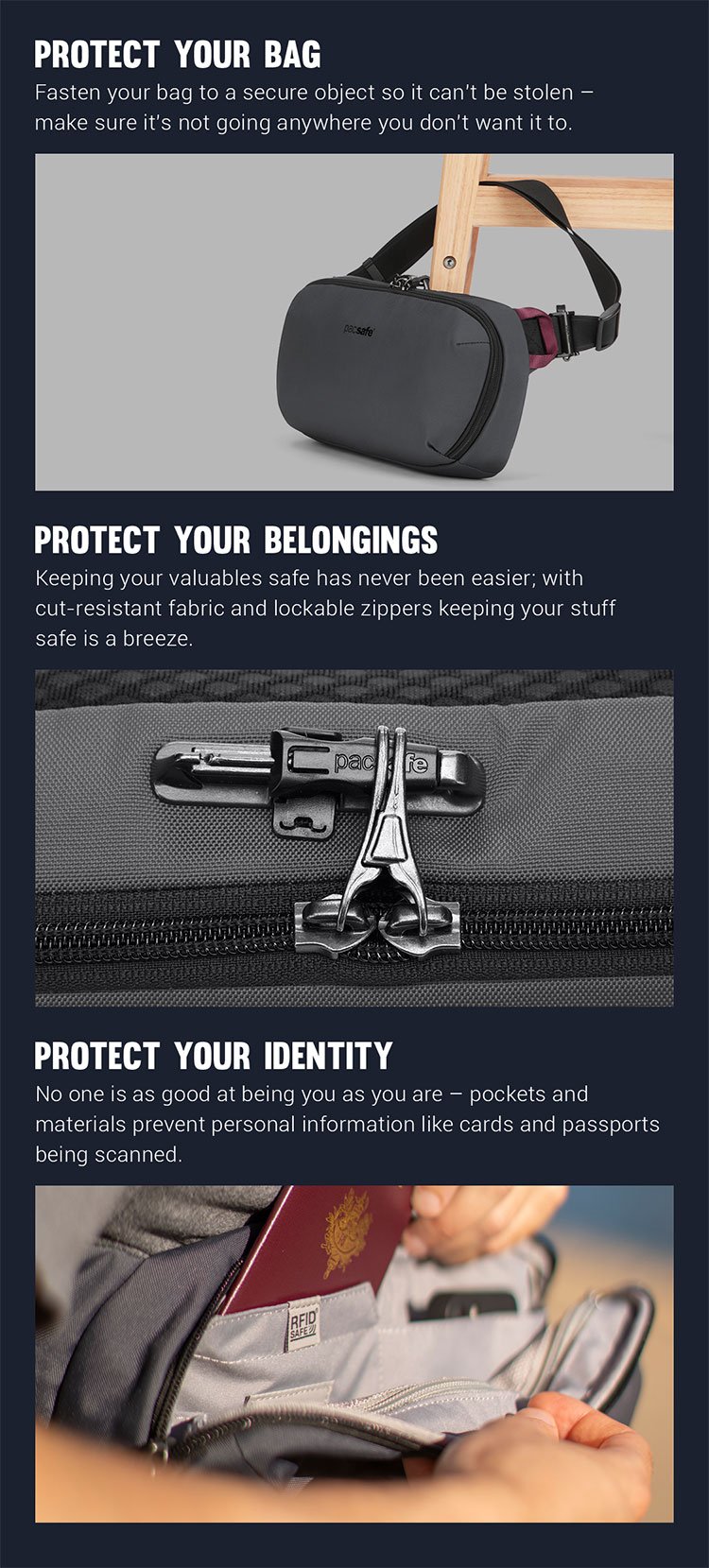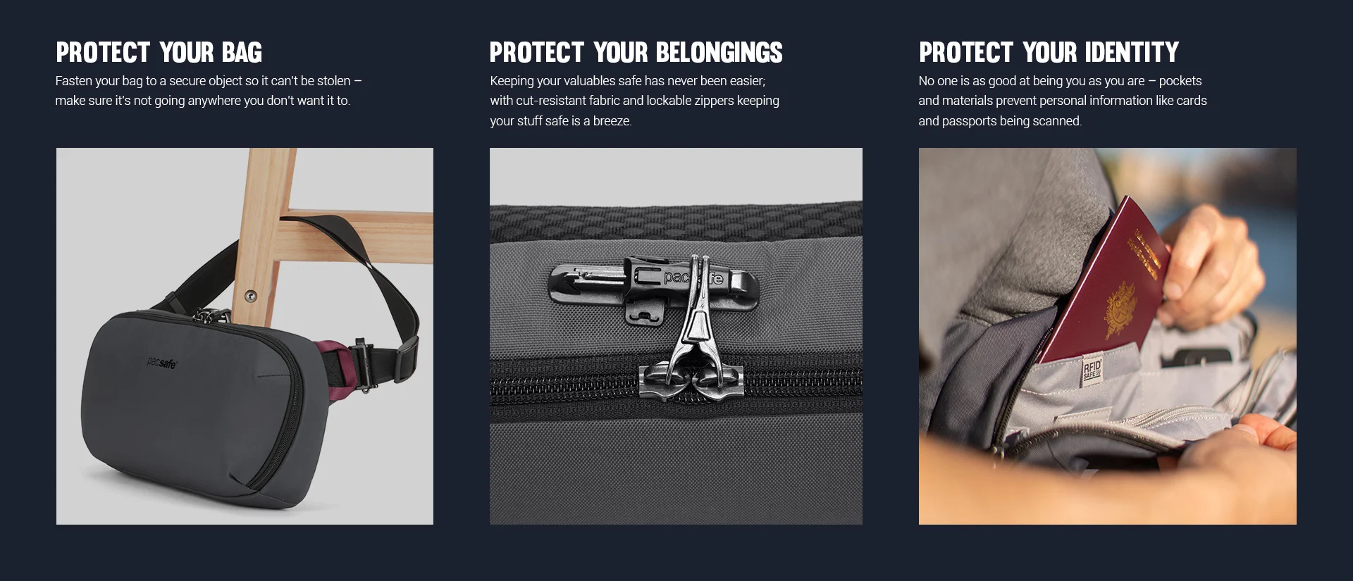 I'll give the bag itself 5 stars - I like its operation, organization, and it feels secure (thankfully not tested on this trip). I bought prior to a trip thinking it was the right size as a single everyday pack. However, after a couple days I realized that I hadn't thought carefully about my needs. Only a couple things actually need to be both secure and readily accessible -- think phone, a credit card or two, hotel key, maybe passport. Everything else for day to day use - umbrella, water bottle, power bank, first aid kit, hat, kids stuff, pen, hand sanitizer, etc etc, -- doesn't really need to be secure, and it gets annoying to keep opening your "secure storage" every time you need a napkin (and the bag was a little small for some days). Personally, I think I would have been better off with a substantially smaller secure cross body bag, coupled with a regular backpack for all the other stuff that I wanted to carry most days but usually don't feel the need to be super secure about - if someone steals my water bottle its not the end of the world.