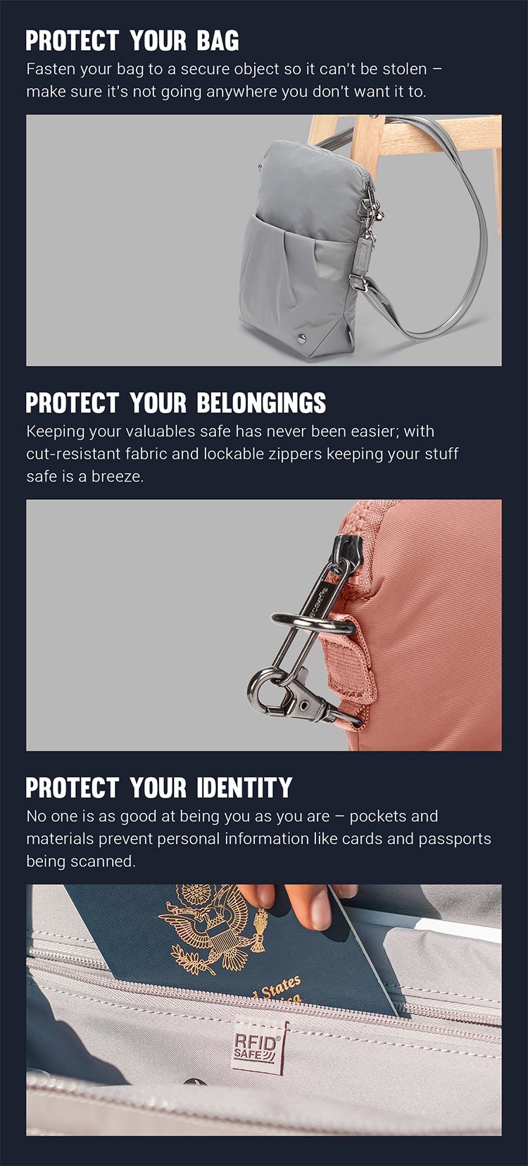 I bought this bag to take on holiday so that I could carry a water bottle, phone and purse, tissues etc during the day and then fold it down at night to use as a handbag. It didn’t disappoint and was easy to move the straps and adjust. I liked the extra security clasp to keep my belongings secure and prevent easy access.
