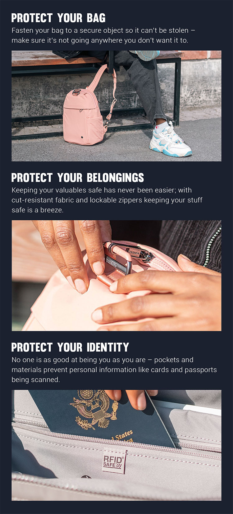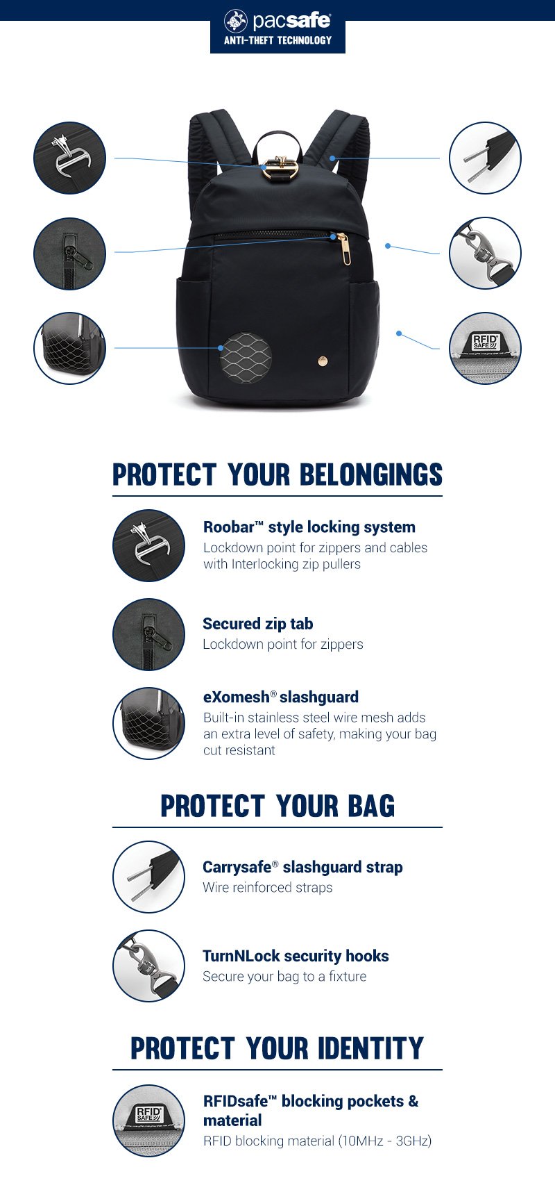 Wanted a small backpack that’s light and easy to carry for leisure and looks good for daytime or evening adventures and still has all the security features - Pacsafe you have got this spot on!