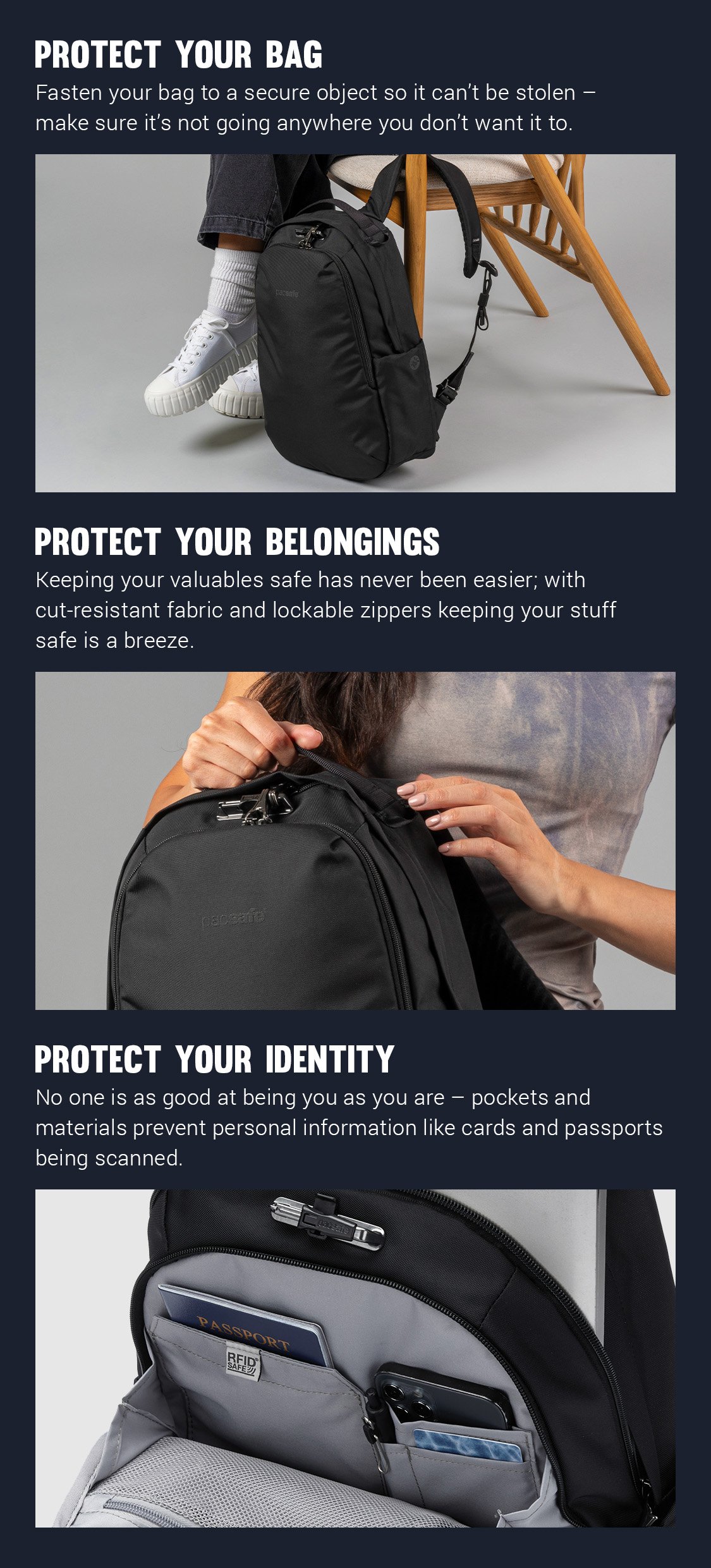 This is my 2nd pacsafe travel bag. Great overall exterior & internior design structure, material used and well-thoughtout locking systems. I'm liking the design and wider more secure detachable shoulder straps too. Keep up the good work! Thank you, Pacsafe. :D