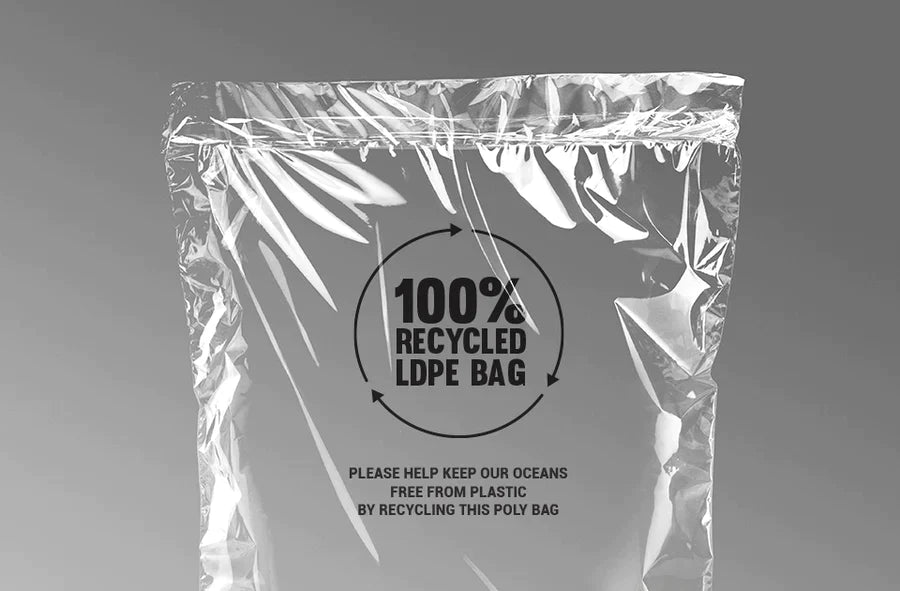 Starting in 2023, all of our products will be shipped using recycled poly bags, which can be recycled again after use. It’s not our final solution, but a better alternative in the meantime as we continue our search.
